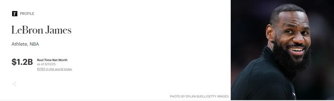勒布朗是现役球员中唯一一个总收入超过10亿的球员,他的总收入是12亿美元,这样的巨富一掷千金很正常。